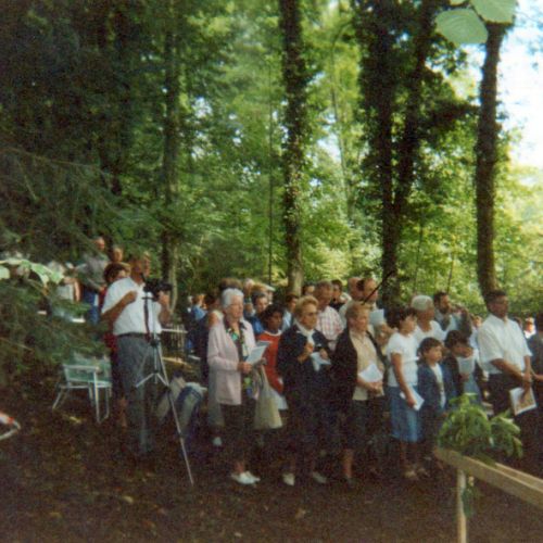 En la dernière messe à la Fontaine, en 2005, je crois, plus de 120 participants, Mrg Pascal Roland, Evêque de Moulins y a même participé ainsi que l’Abbé Cabaud, mais , hélàs , depuis le décès de Mr Fallot, cette nouvelle tradition fut abandonnée , et la végétation a repris ses droits, quel dommage !!!